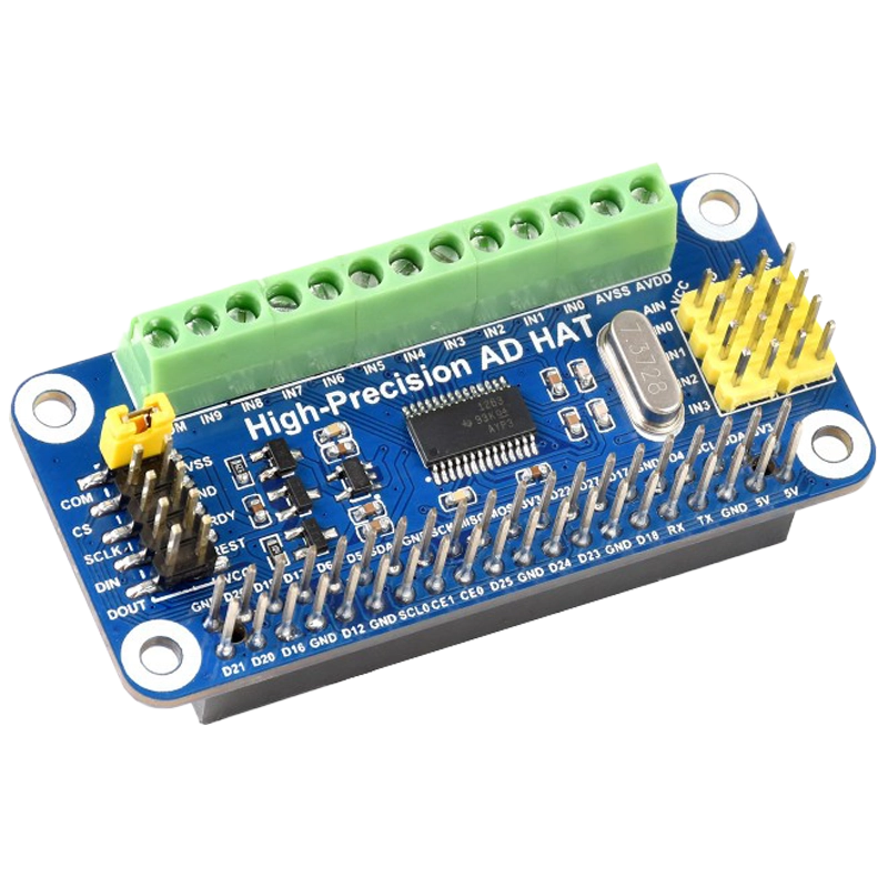 Waveshare High-Precision AD HAT for Raspberry Pi | ADS1263 10-Ch 32-Bit ADC